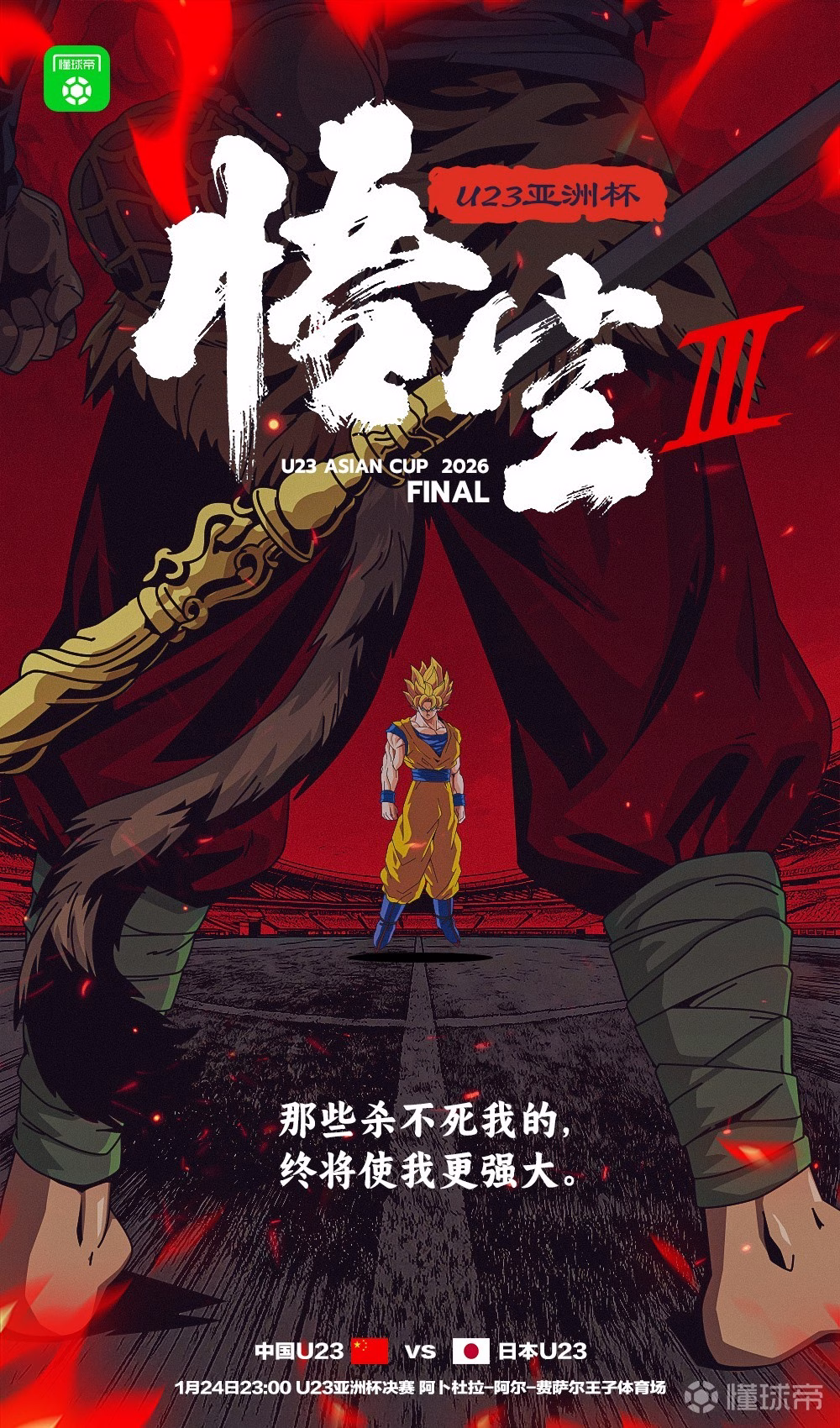 Goku Encontra o Rei Macaco Sun Wukong em Visual Especial da Final da Copa da Ásia Sub-23 China vs Japão